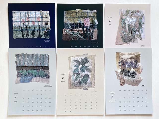 2026年4月スタート壁掛けカレンダー “April 2026 – March 2027 Calendar" 規格/12枚で1セット、A4サイズ 印刷/デジタル印刷 紙/ライトスタッフGA(N)A-FS 210kg 価格/4500円 毎年制作しているカレンダー。 今年も新しい作品を収めた一冊ができあがりました。 ぎりぎりまで刺繍を続けていた、 できたてほやほやの作品も収めています。 質感が伝わり、思わず手で触れて確かめたくなるようなリアルさを感じていただけたら嬉しいです。 カレンダーにはグレーのボードをセットしており、折り曲げることなく一枚ずつ飾っていただけます。 額に入れたり、カードスタンドに立てかけたりと、お好みの方法でお楽しみください。 また、カレンダーとしての役目を終えたあとも、絵の部分をカットして飾るなど、長く楽しんでいただけましたら幸いです。 ※ 制作コストの上昇に伴い、昨年の価格より改定いたしました。 ※印刷の色調、紙や性質によって原画と多少色が異なる場合がございます。 ※ご注文いただいた商品のキャンセル、返品、交換はお受けいたしかねますので、あらかじめご了承くださいませ。