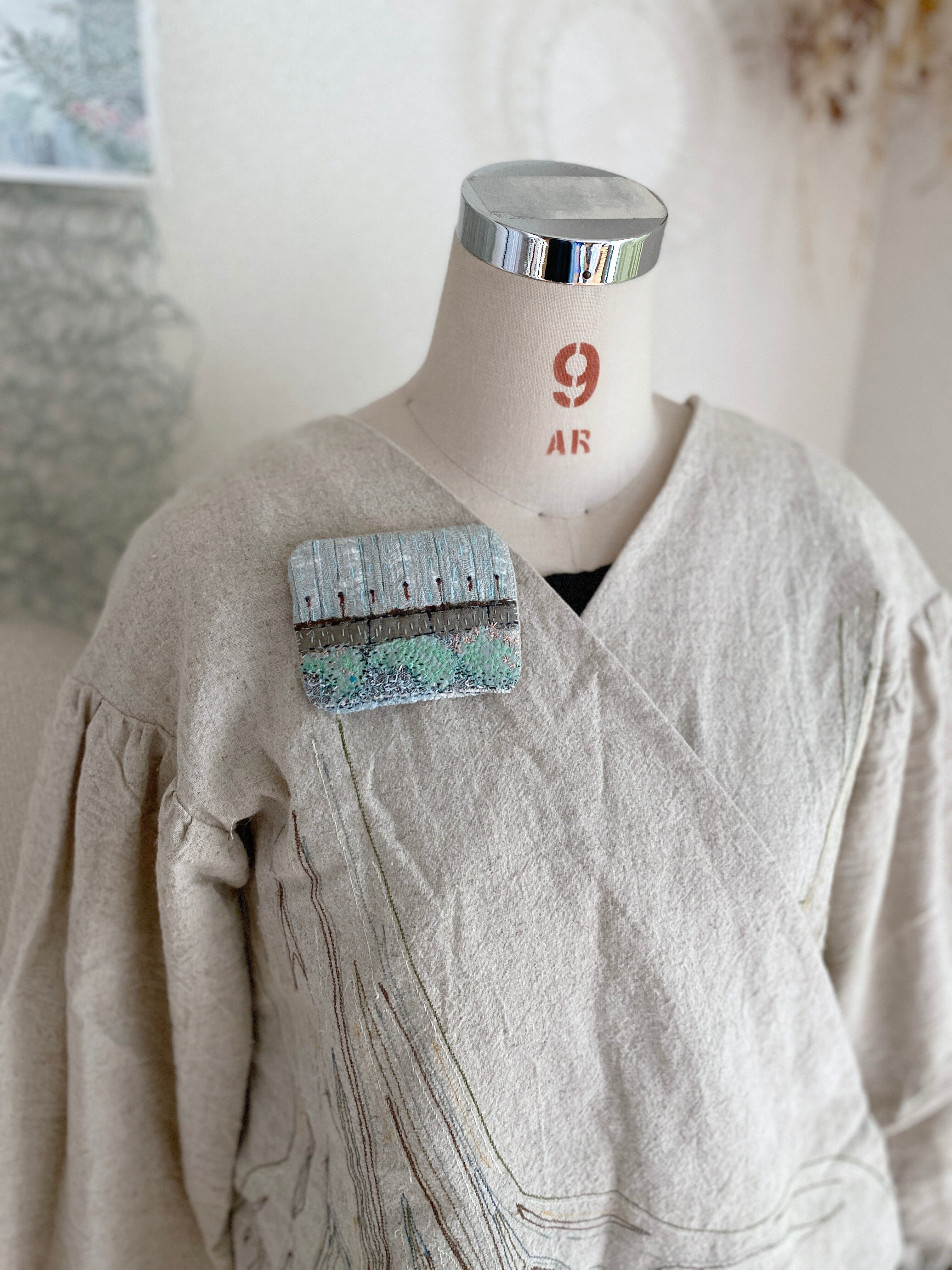 ≪ 波打ちトタンと紫片喰ブローチ ≫