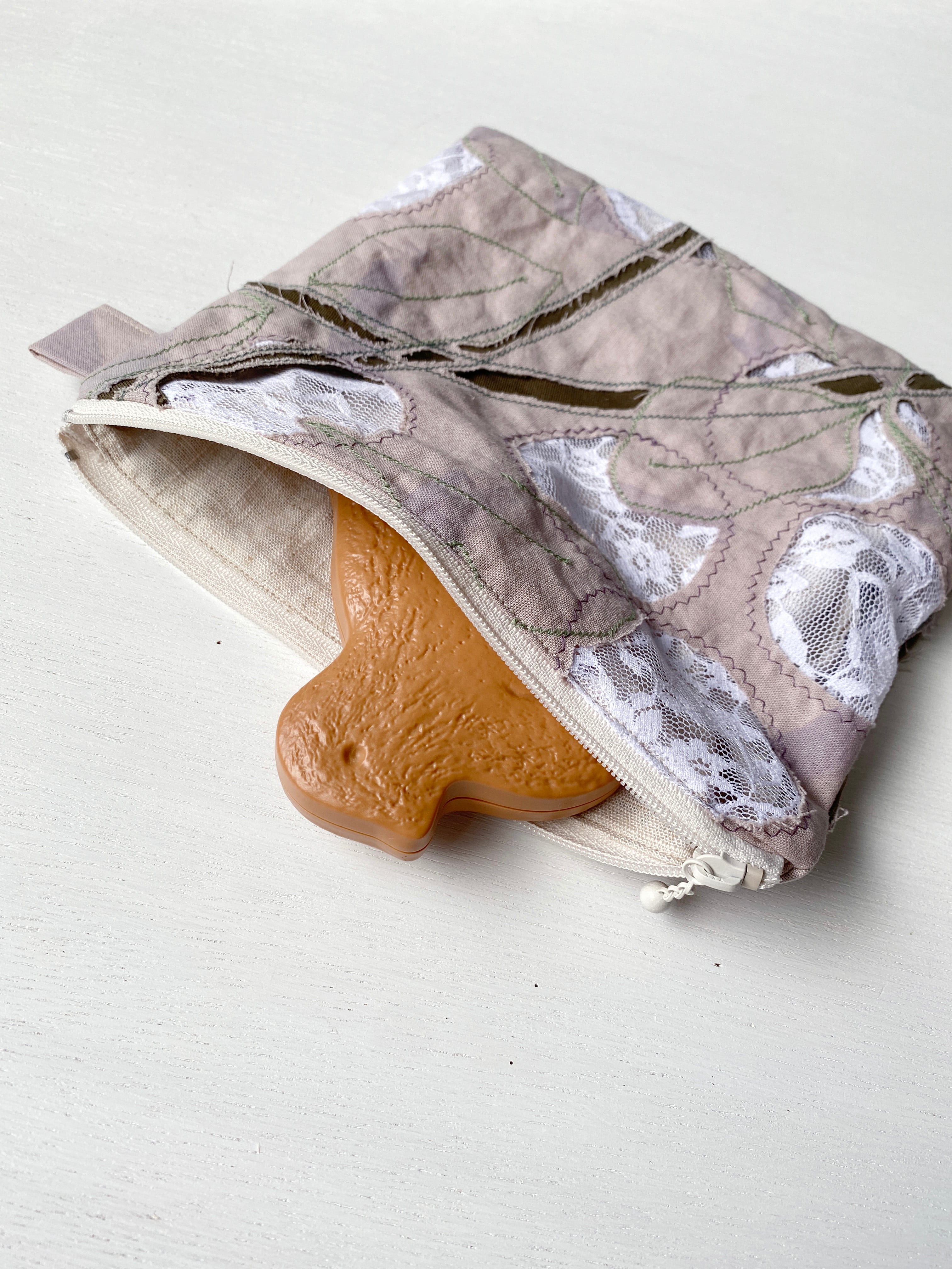 生地を染めるところからポーチの形になるまで全て手作業一点ものになります。