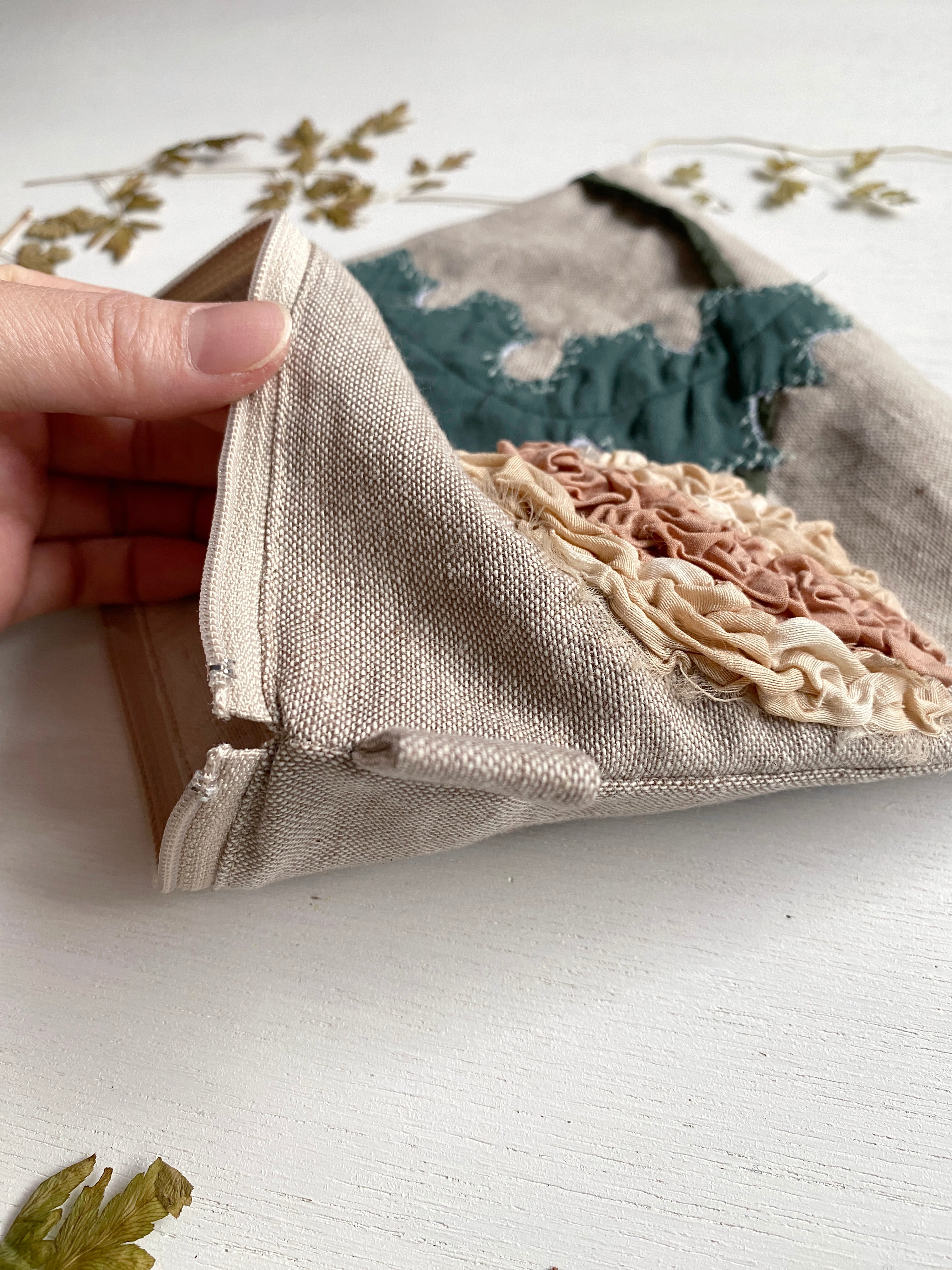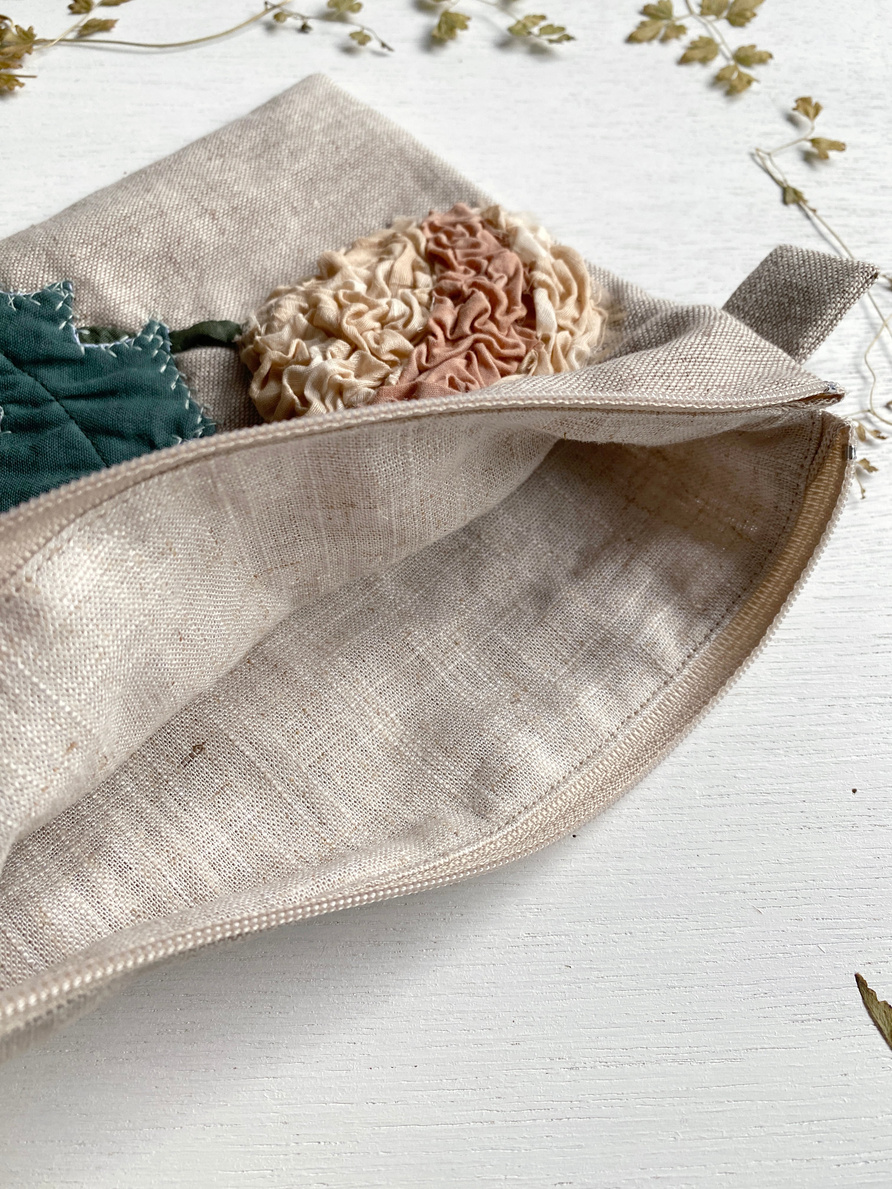 生地を染めるところからポーチの形になるまで全て手作業一点ものになります。