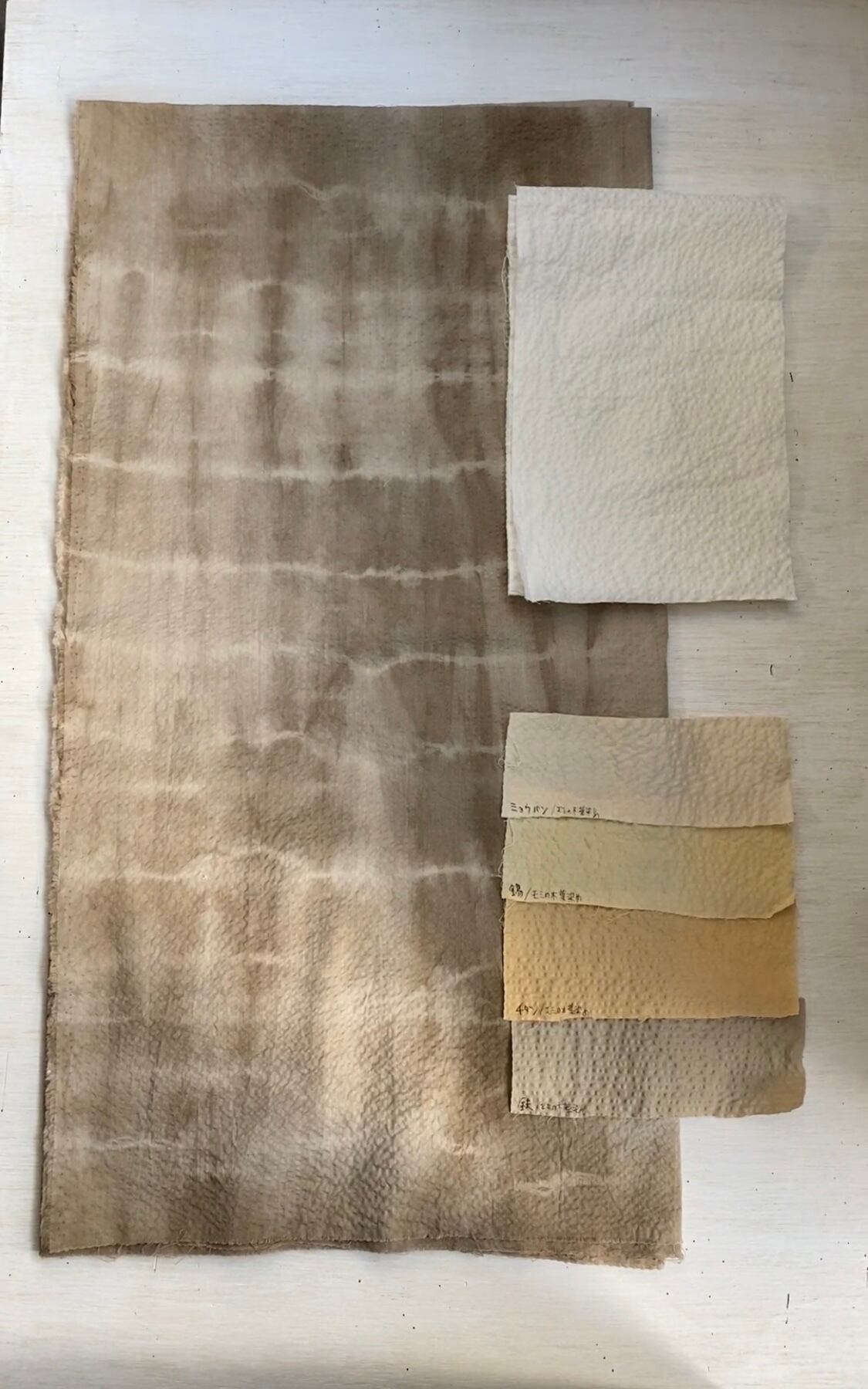 地/ リップル 綿100% もみの木の葉っぱ染め