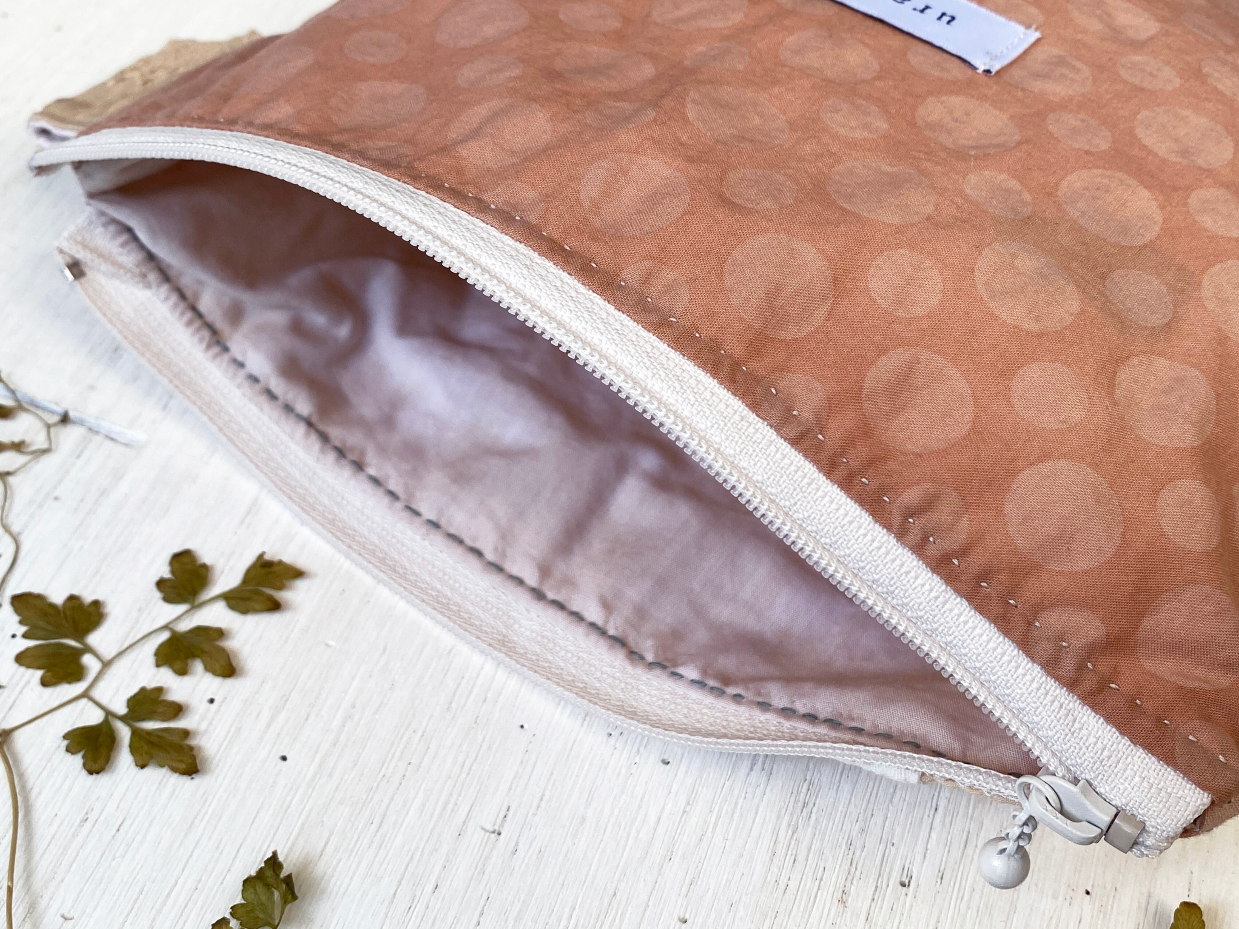 表地のファスナー部分は、手縫いで仕上げています。