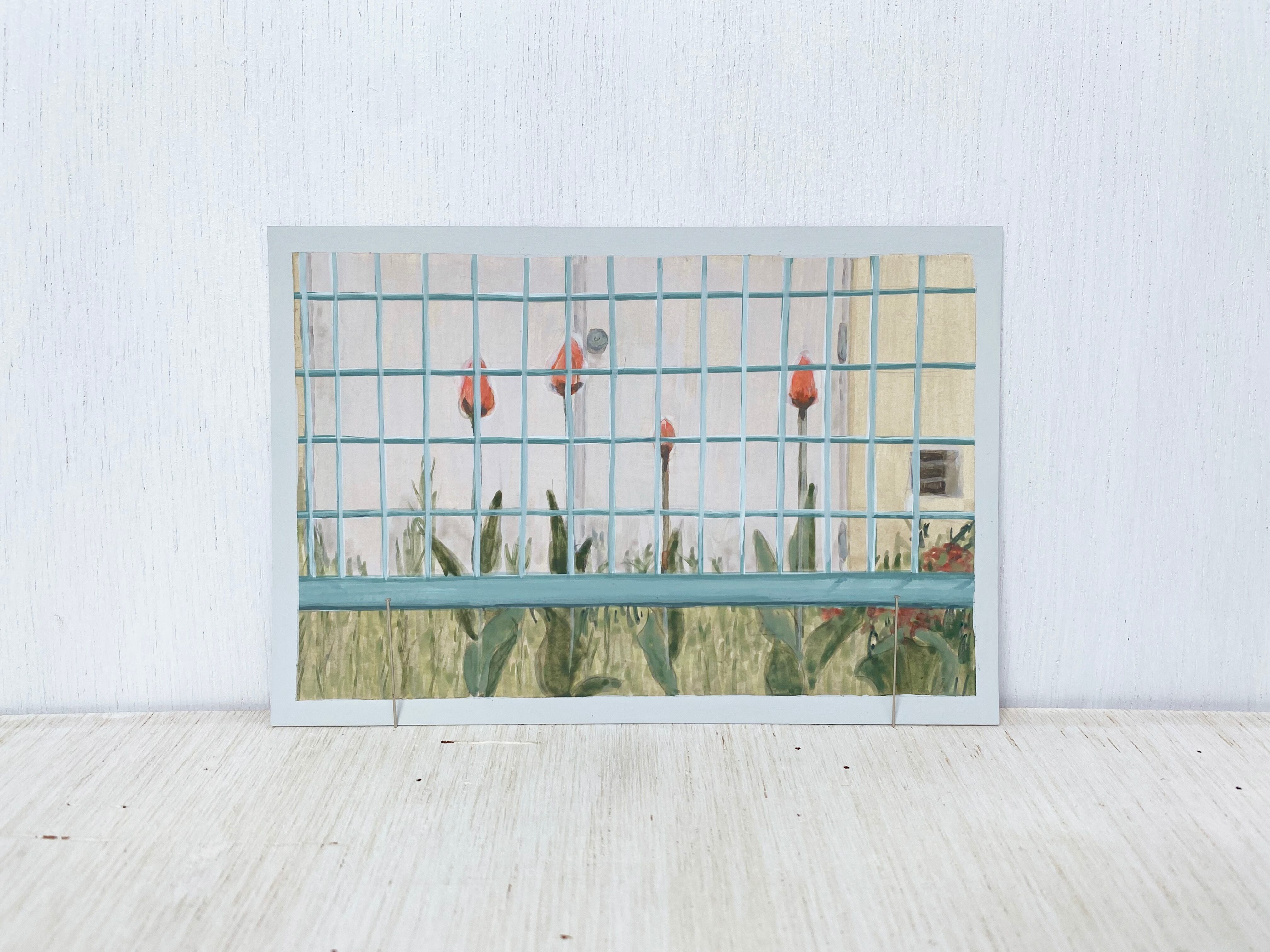 【原画】チューリップと青い柵