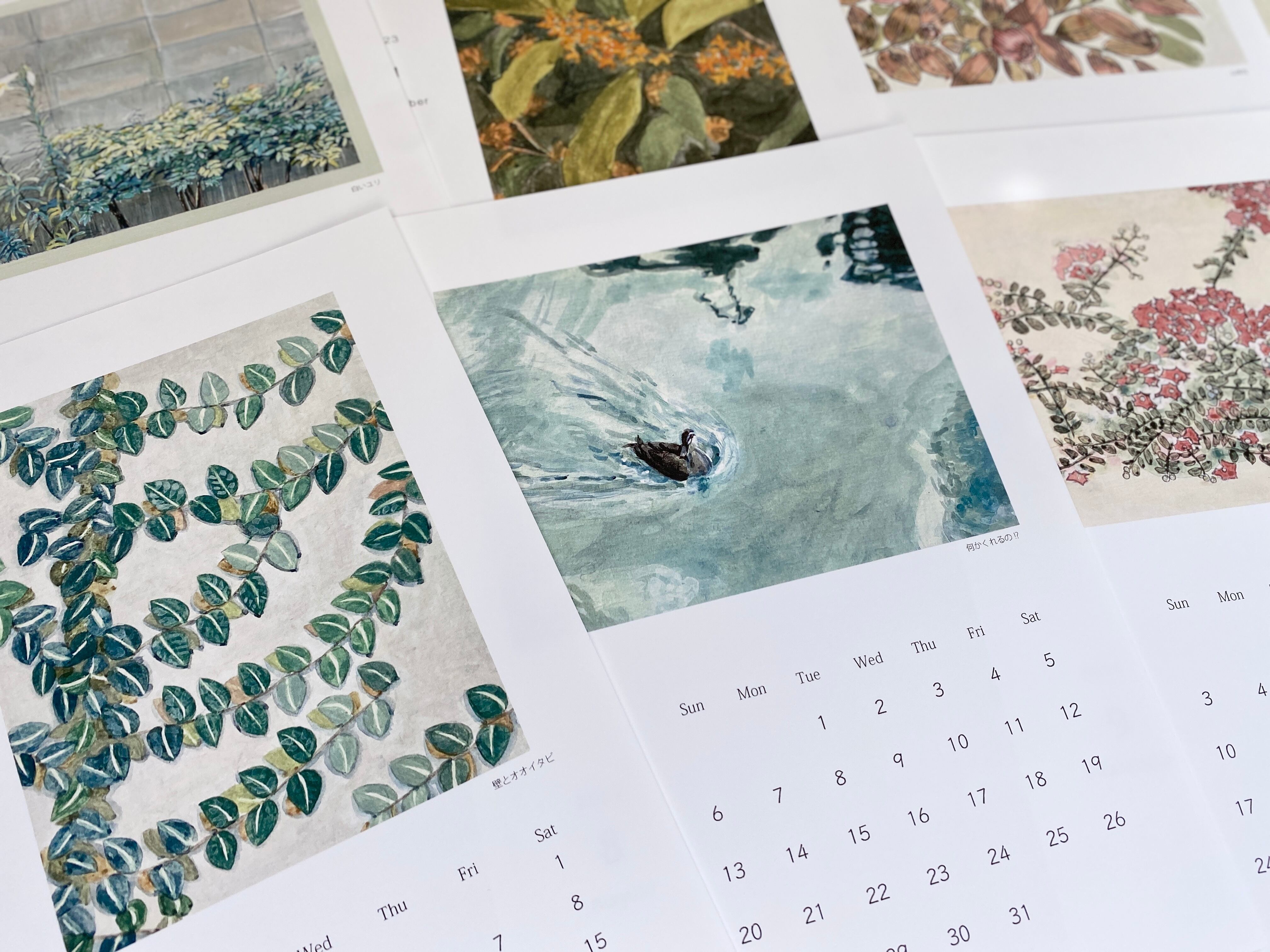 額に入れたり、カードスタンドで立てかけたり。カレンダーの役目が終わってからも気軽に絵のサイズにカットしたり、楽しんでいただきたいです。