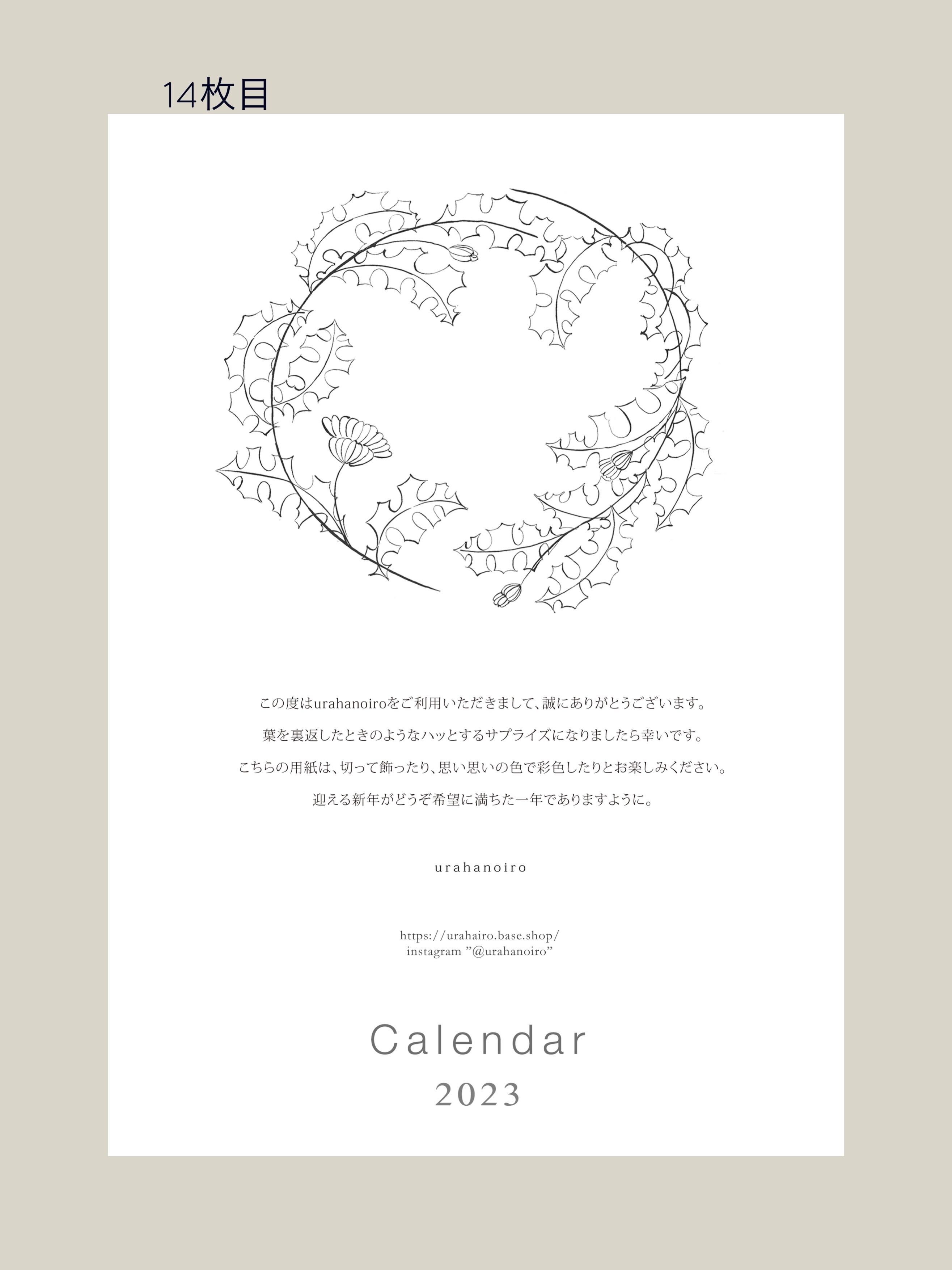 urahanoiro 期間限定2023カレンダー(A4サイズ)
