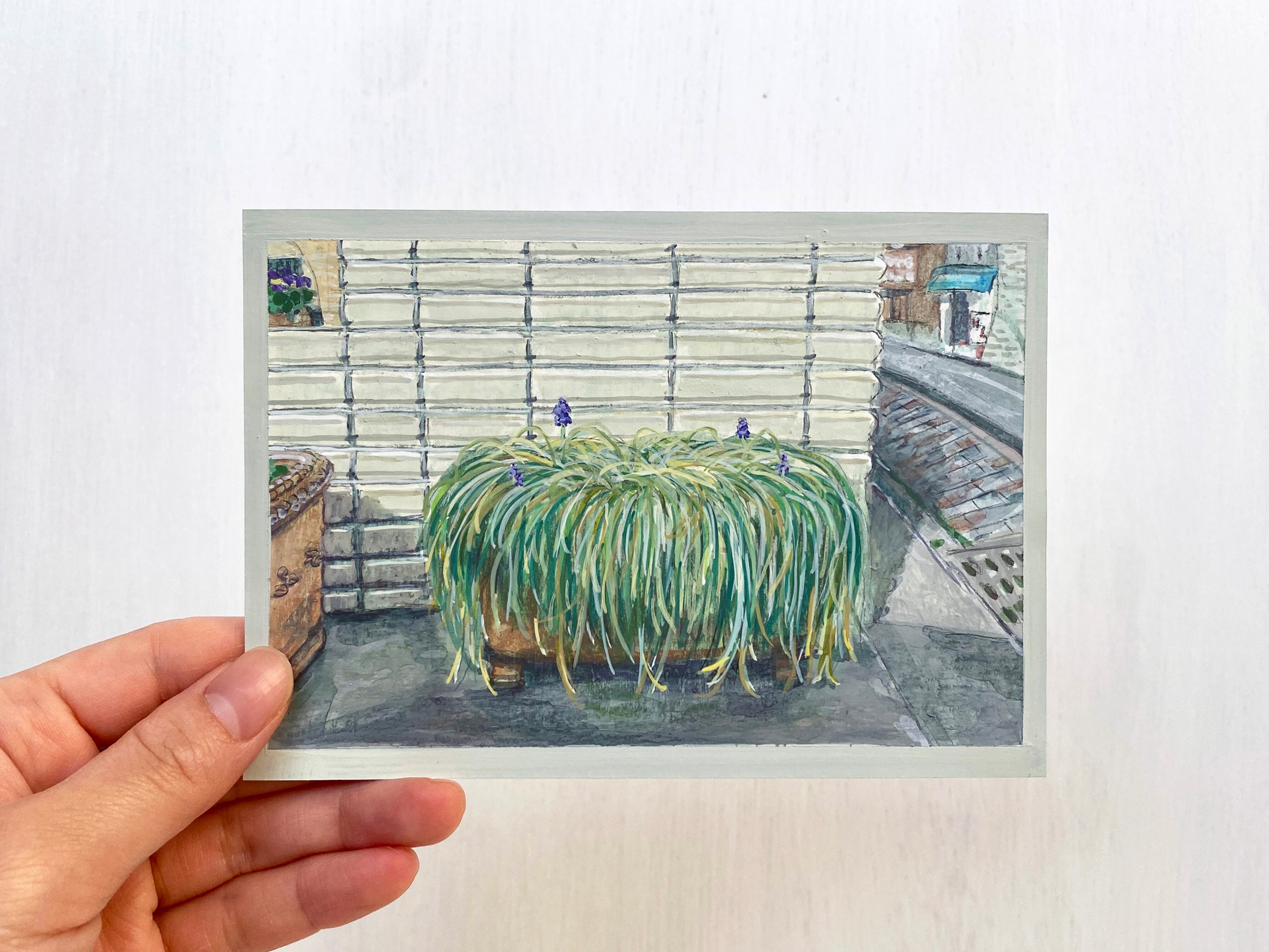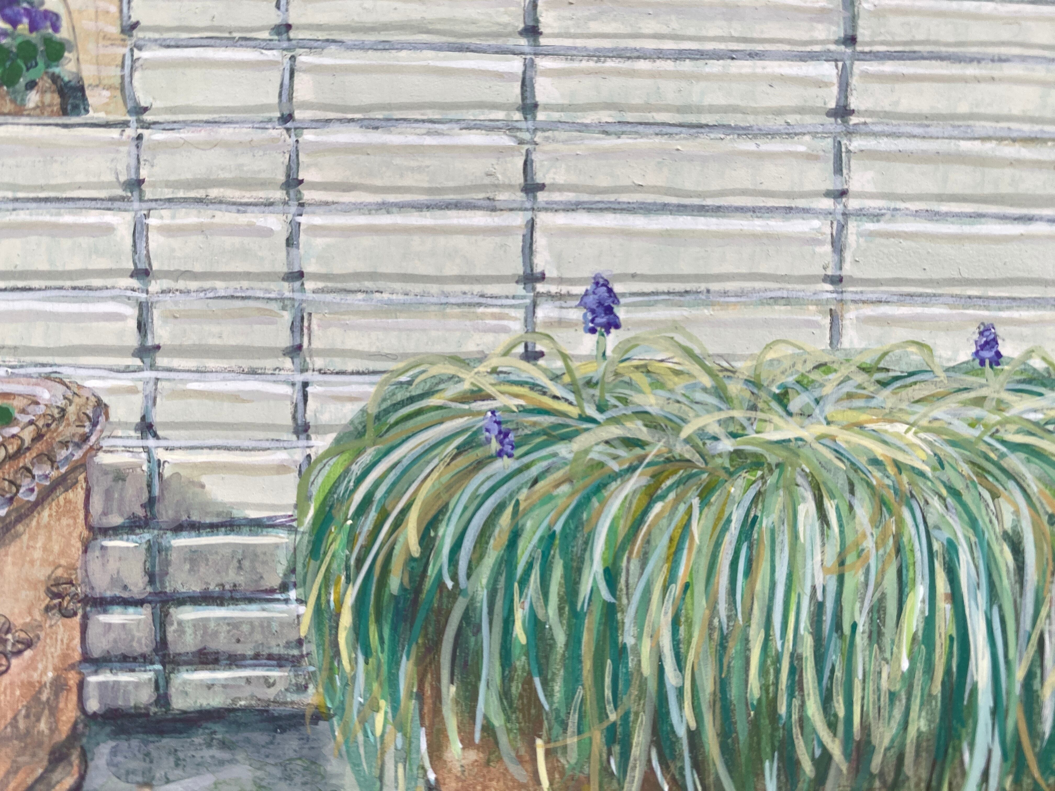 植木鉢から流れるムスカリの葉っぱが印象的でした。
